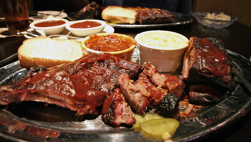 Typically Kansas City BBQ is rubbed in spice and smoked slowly over a variety of woods and normally served in a thick, viscous tomato-based barbecue sauce. This is the most important characteristic of Kansas city BBQ. This integral part of Kansas city BBQ usually provides a very sweet, spicy, tangy flavor profile and is much thicker than most sauces. The sweetness in the sauce often comes from molasses.